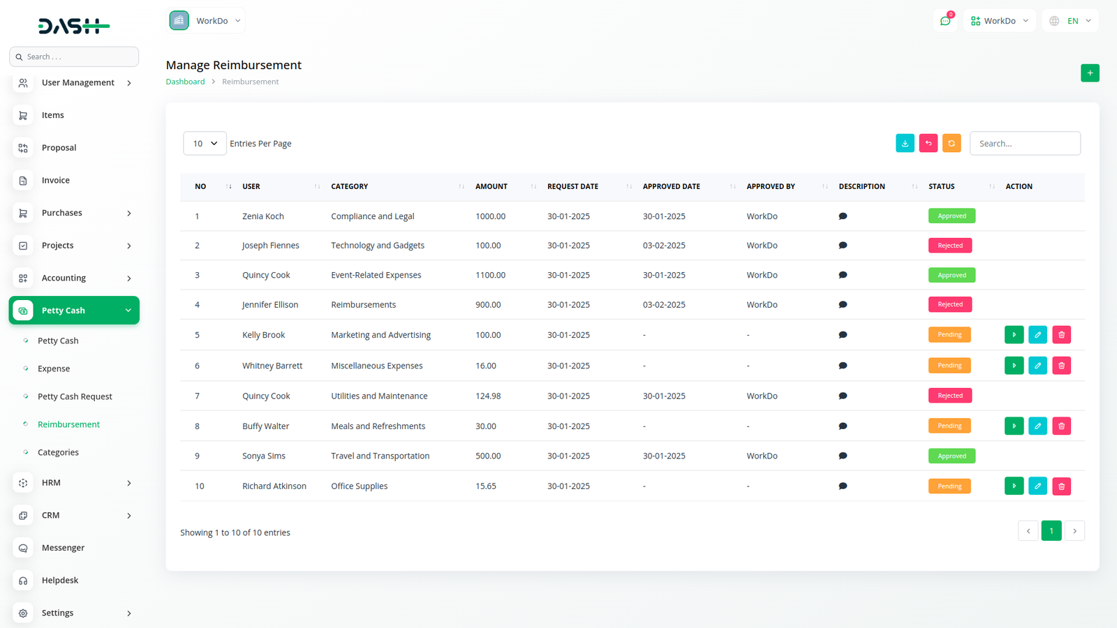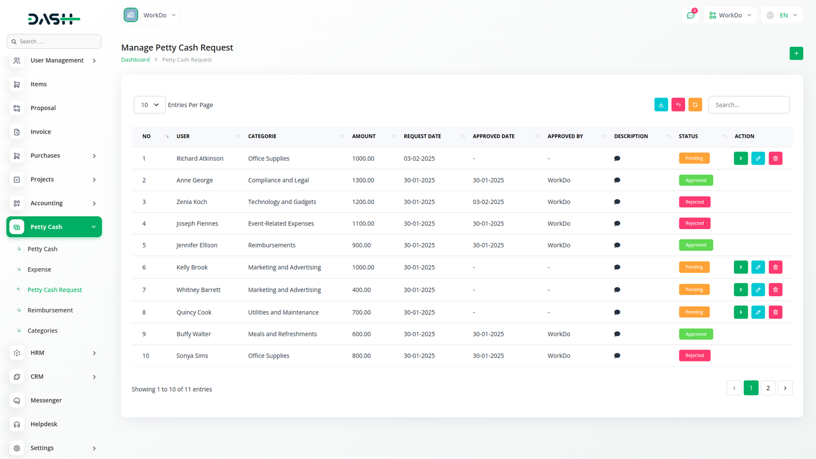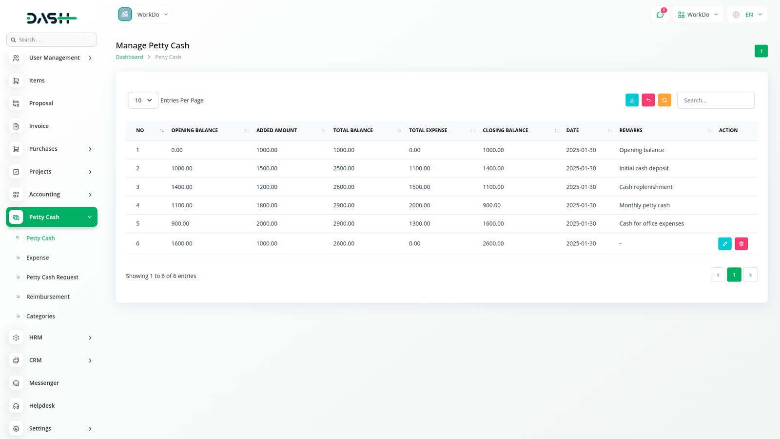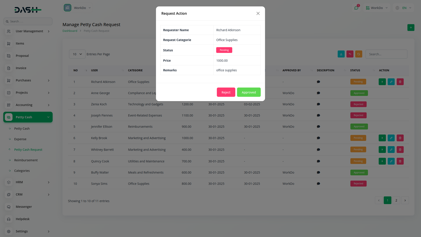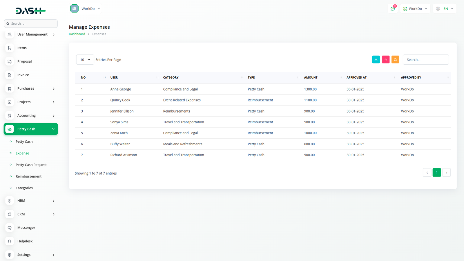 Easily track and manage petty cash expenses with the Petty Cash Management add-on in Workdo Dawamk