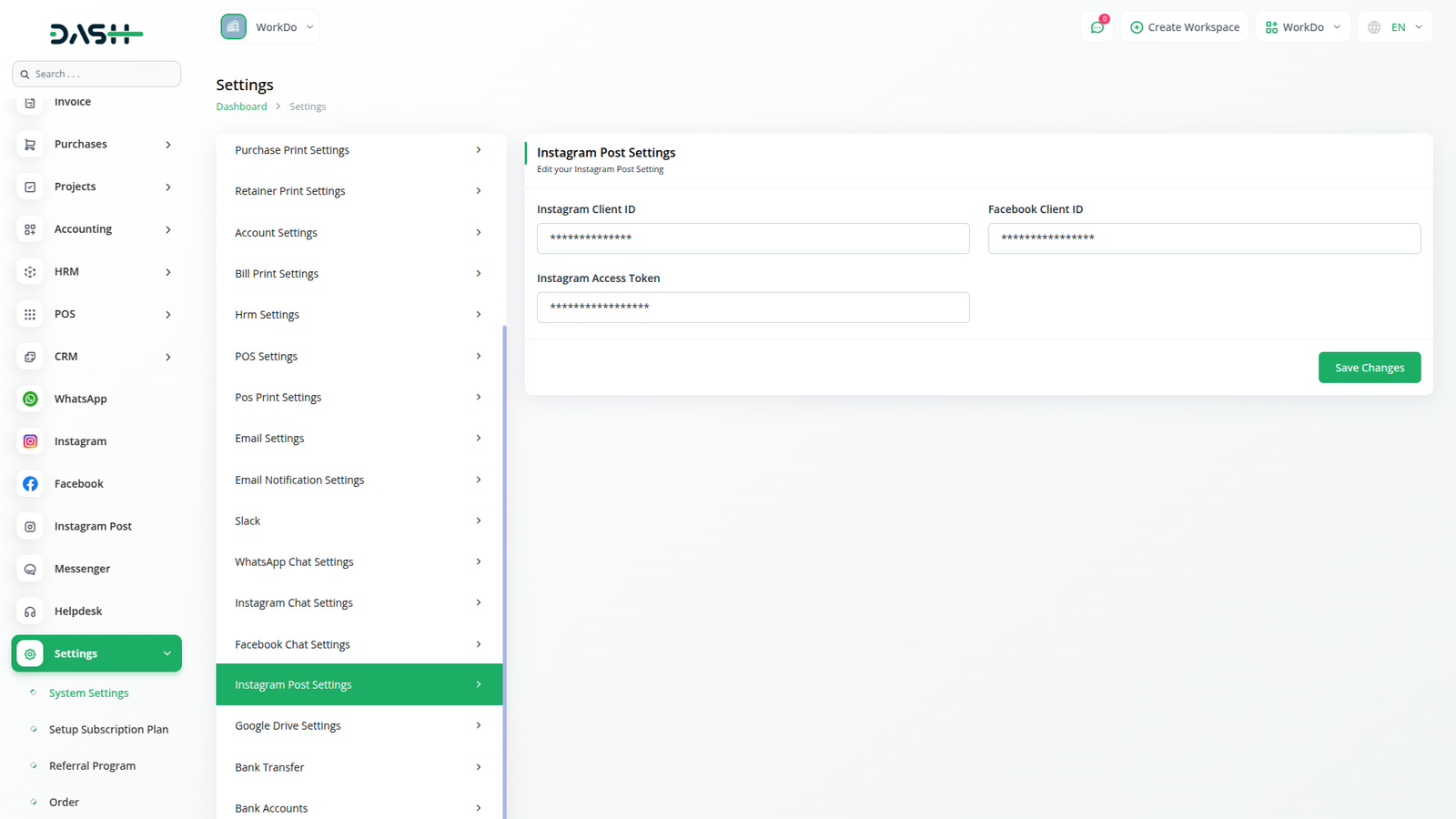 Managing your Instagram content becomes effortless with the Dawamk SaaS Instagram Add-on. Instead of switching between platforms, you can integrate your Instagram account directly into the Dawamk SaaS portal by entering your Instagram Client ID, Facebook Client ID, and Access Token. Once set up, you gain full control over your Instagram posts without ever needing to leave the portal. Whether you`re handling a personal brand or managing a business page, this integration allows you to streamline your content creation and posting process, making it more efficient and hassle-free.